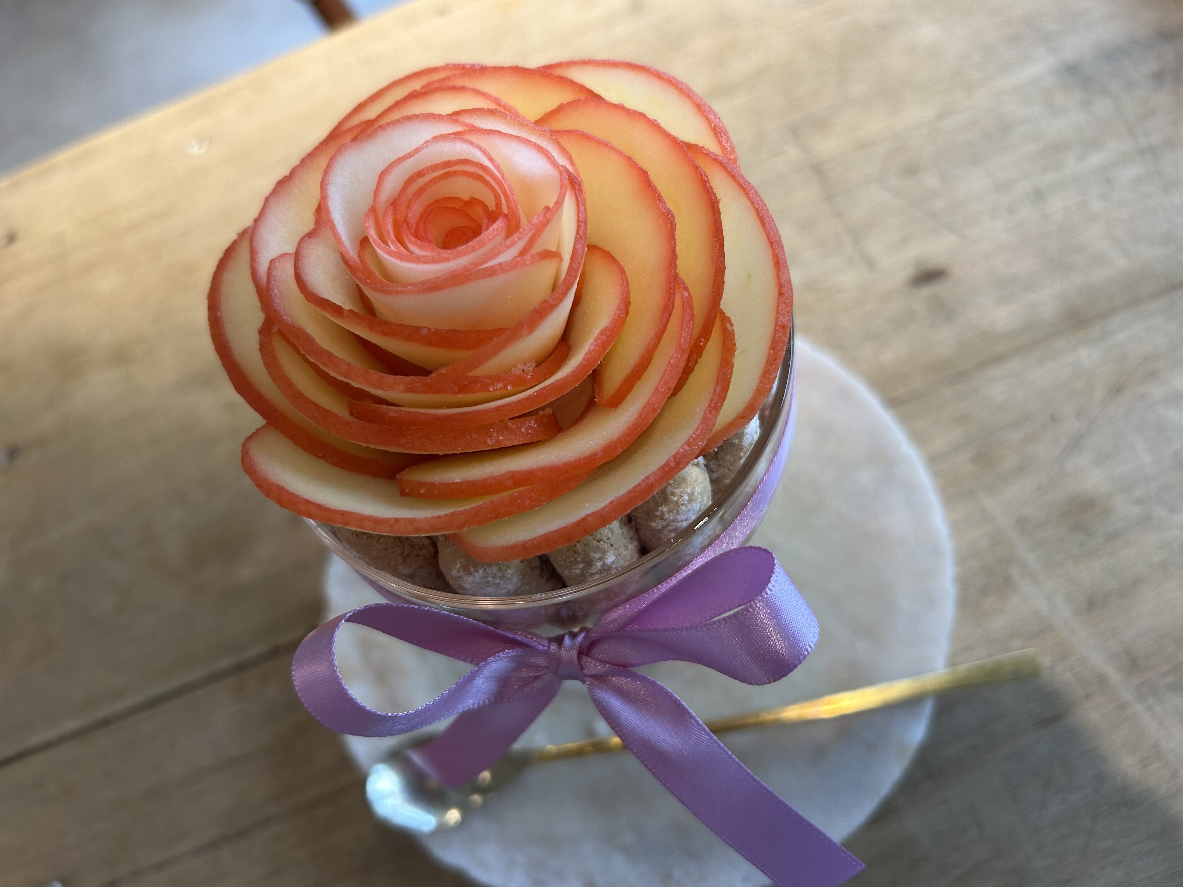 薄い繊細なりんごが花びらのように丁寧に飾られていてお花のような華やかな見た目です!