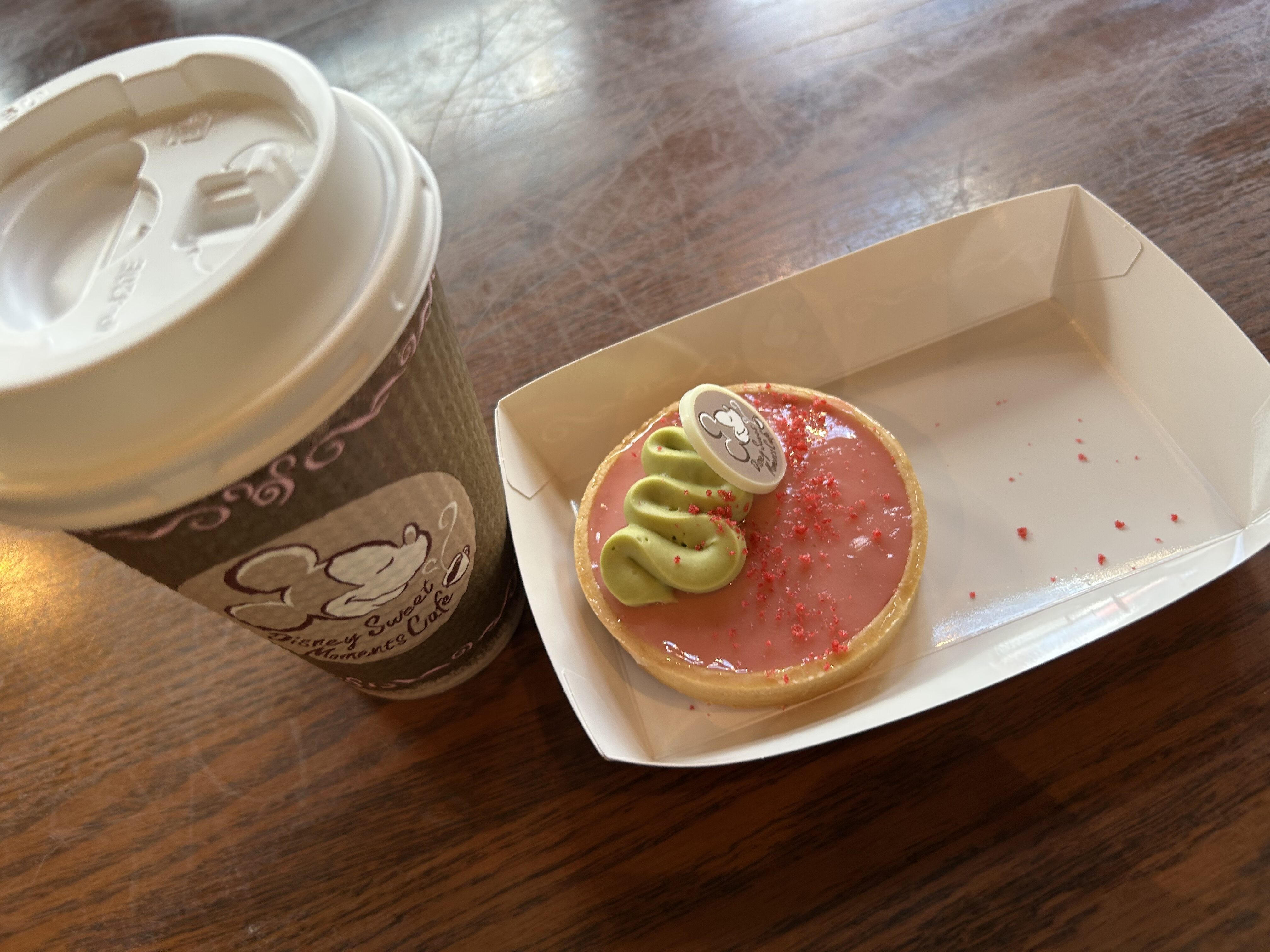 「ゴンドリエ・スナック」で「ディズニー・スウィートモーメント・カフェ」の「カフェ&スウィーツセット」でオリジナルブレンドコーヒーとスウィーツのペアリングを楽しむことができました。